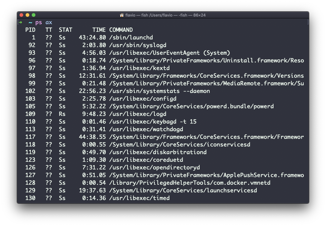 As you can see, the longer commands are cut. Use the command ps axww to continue the command listing on a new line instead of cutting it: