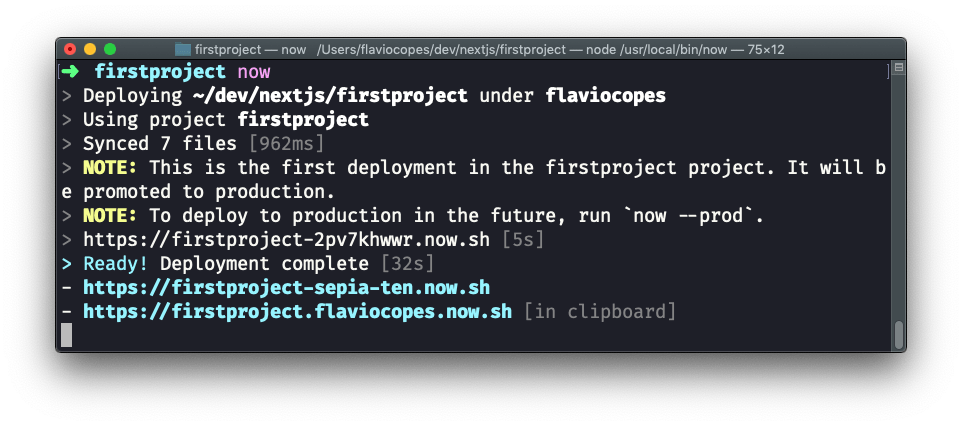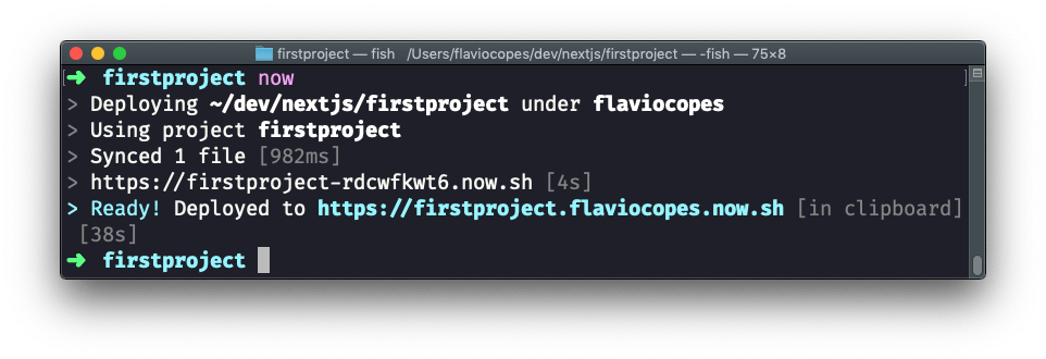 Once you run the now program, the app is deployed to a random URL under the now.sh domain.