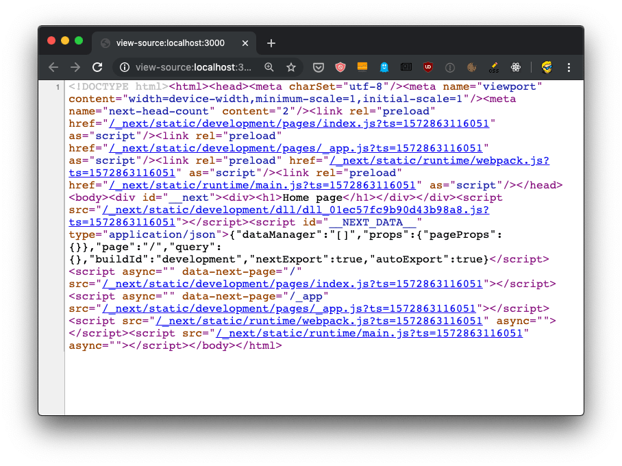 It’s one of the main selling points of Next.js: if we create a site using Next.js, the site pages are rendered on the server, which delivers HTML to the browser.
