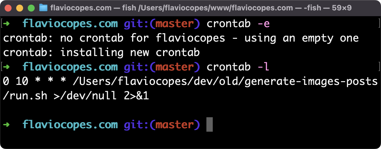 0 10 * * * /Users/flaviocopes/dev/run.sh >/dev/null 2>&1
