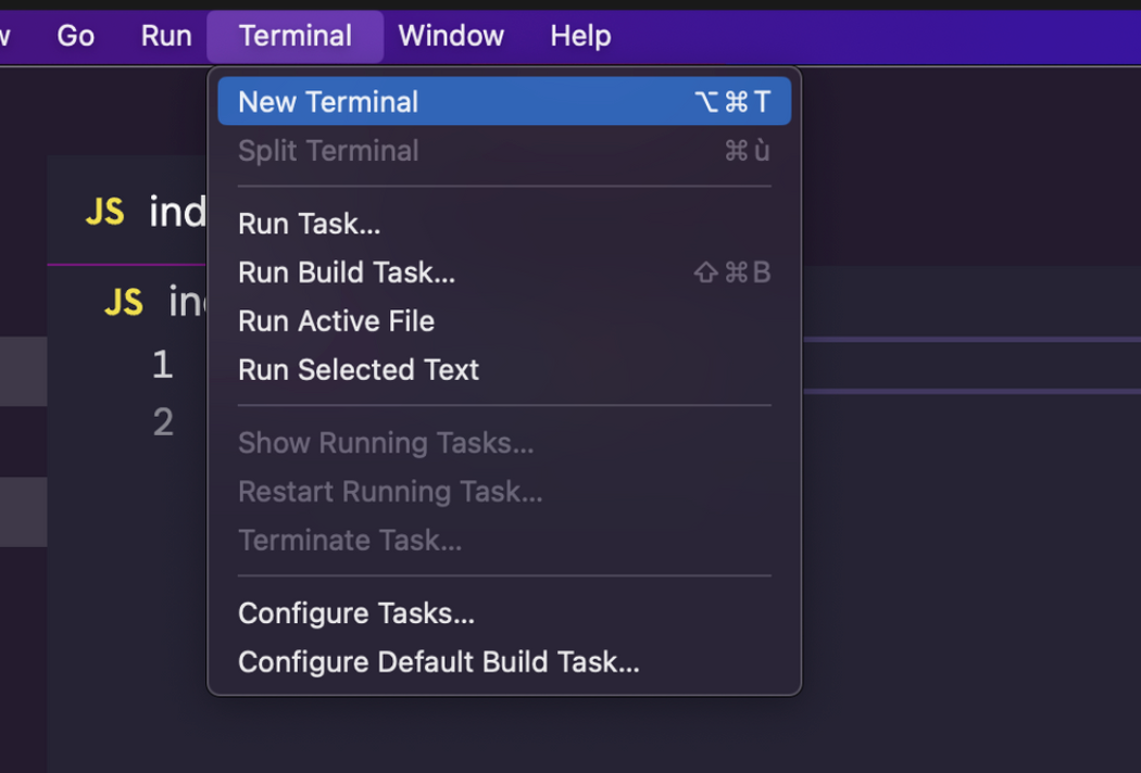 Or inside VS Code after opening the terminal inside VS Code, using the menu Terminal → New Terminal