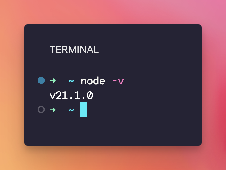 At the end of the installation process, you should be able to open your terminal and have the node command available, in the standalone terminal: