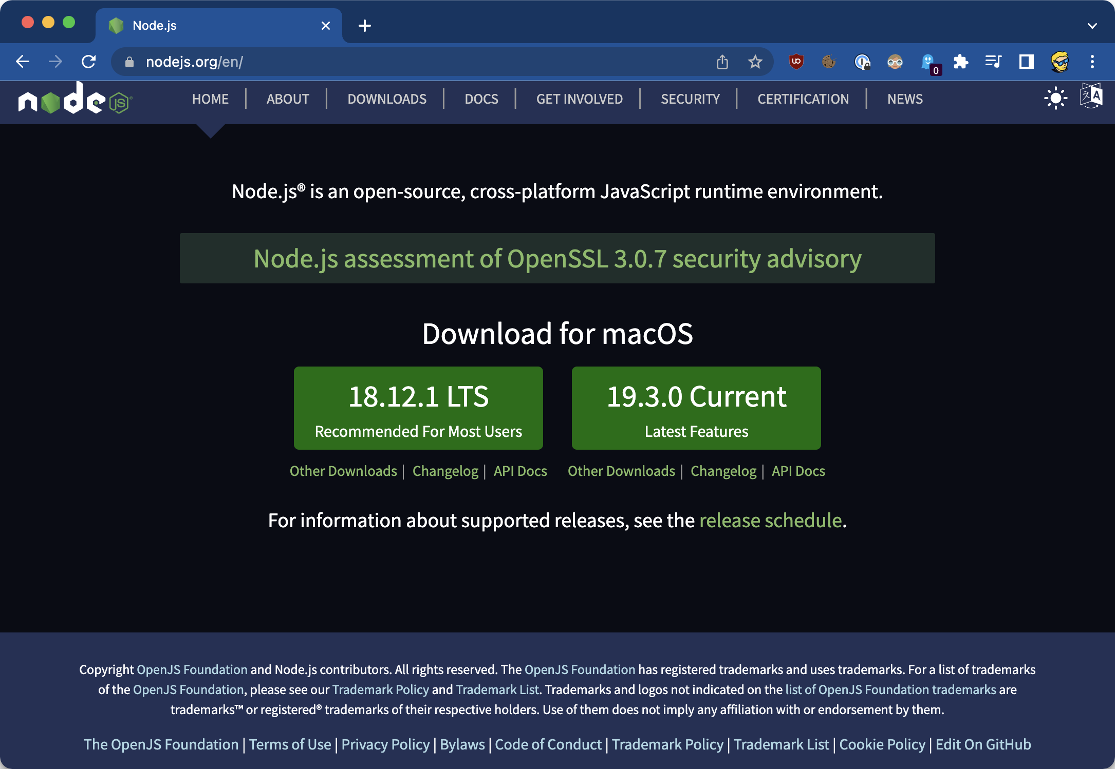 You have 2 options: LTS (long-term support) or Current, which has all the latest features.