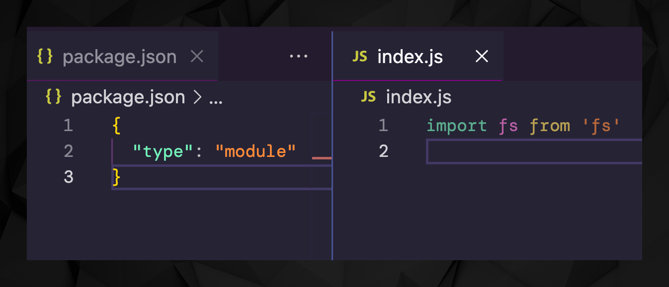 NOTE: as explained in the ES Modules unit, remember to rename the file to .mjs or create a package.json file in the project folder, and add this content: