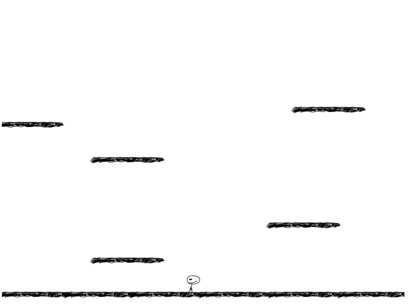 Whenever the player sits on the bottom (player.body.touching.down) and the up arrow is pressed, we push it to the top. Gravity will simulate a jump like the ones we do in the real world.