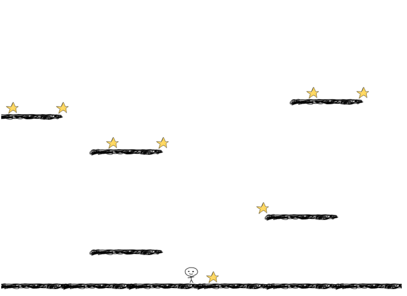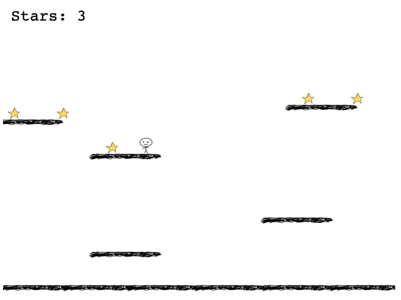 The player can move around with the left/right arrow keys, and jump with the up arrow key. The goal is to pick up all the stars in the game: