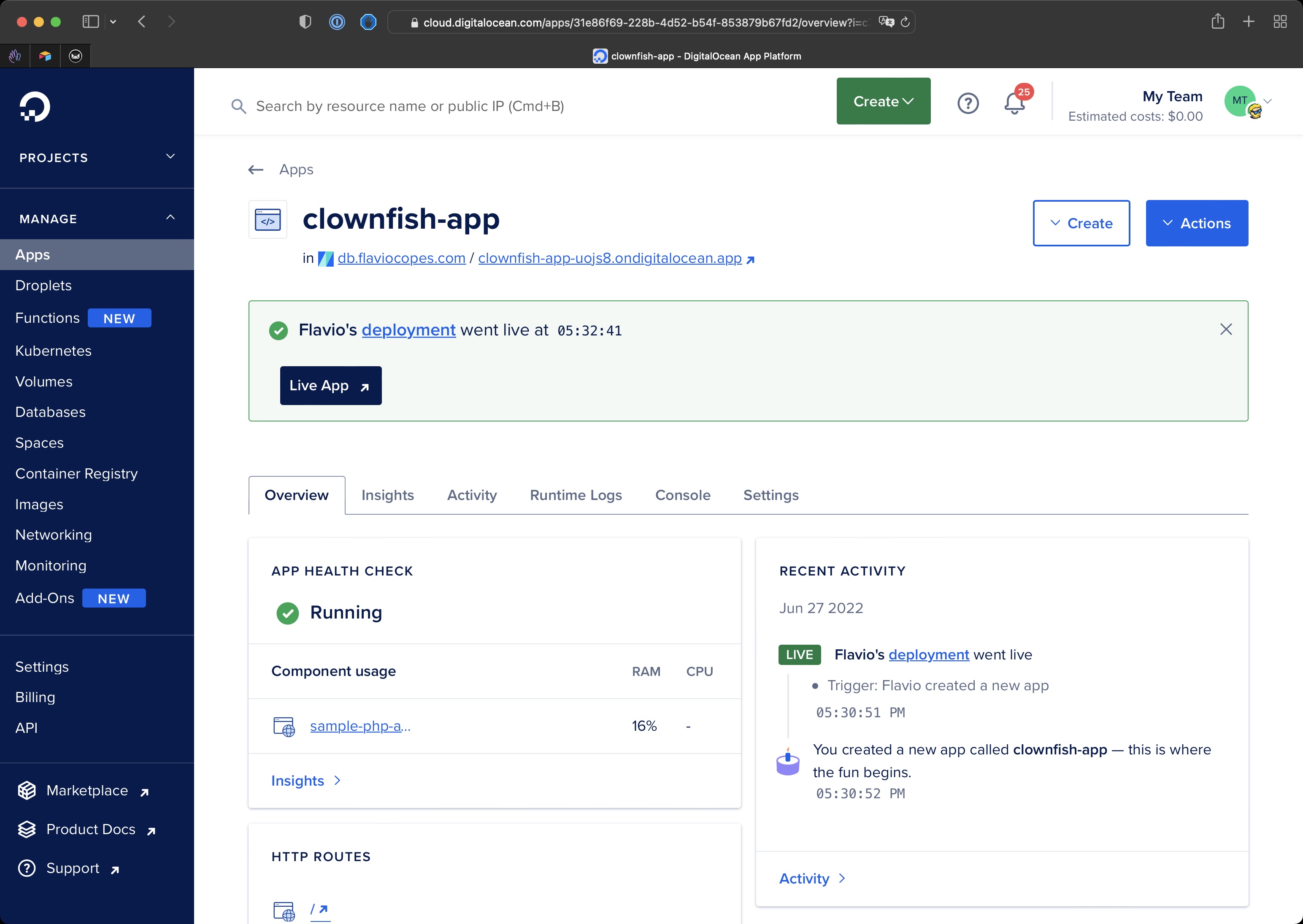 If you don’t have an account yet, use my referral code to sign up get $100 free credits over the next 60 days and you can work on your PHP app for free.