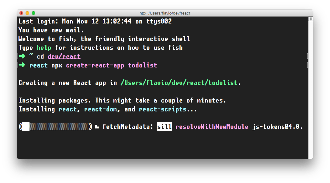 npx create-react-app todolist