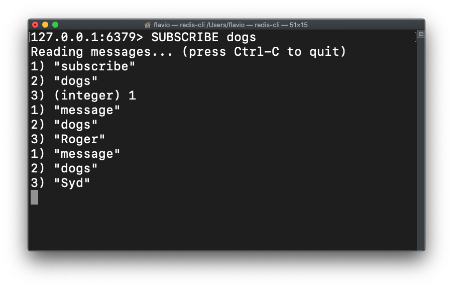 In another redis-cli window, type: