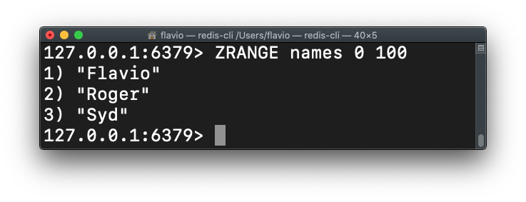 Sorted sets work in a similar way to sets, and they use similar commands, except S is now Z, for example: