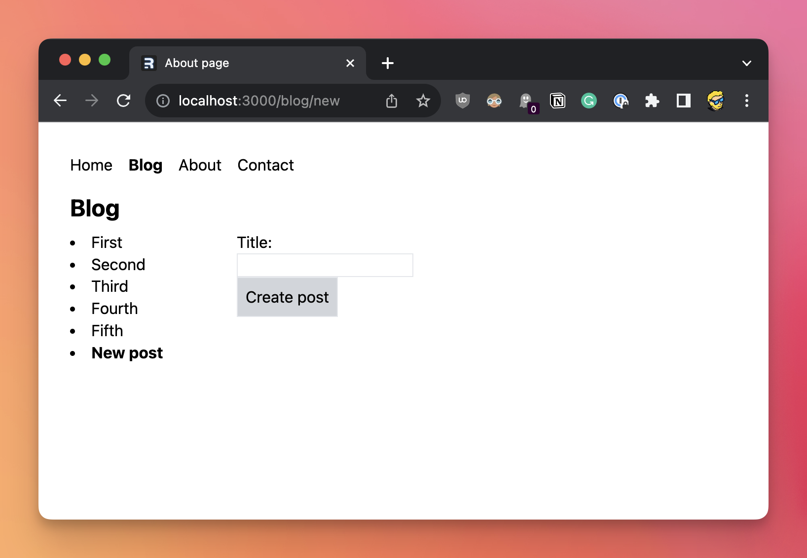 Let’s add a little form to add a new blog post.