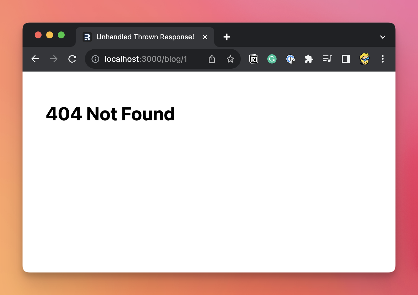If you try clicking a blog post, notice the URL changes but we have an error because we haven’t created the route for that URL yet.