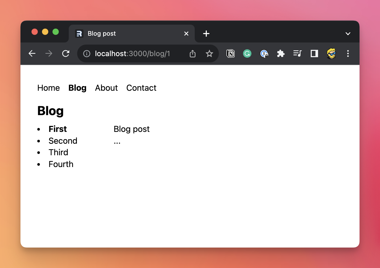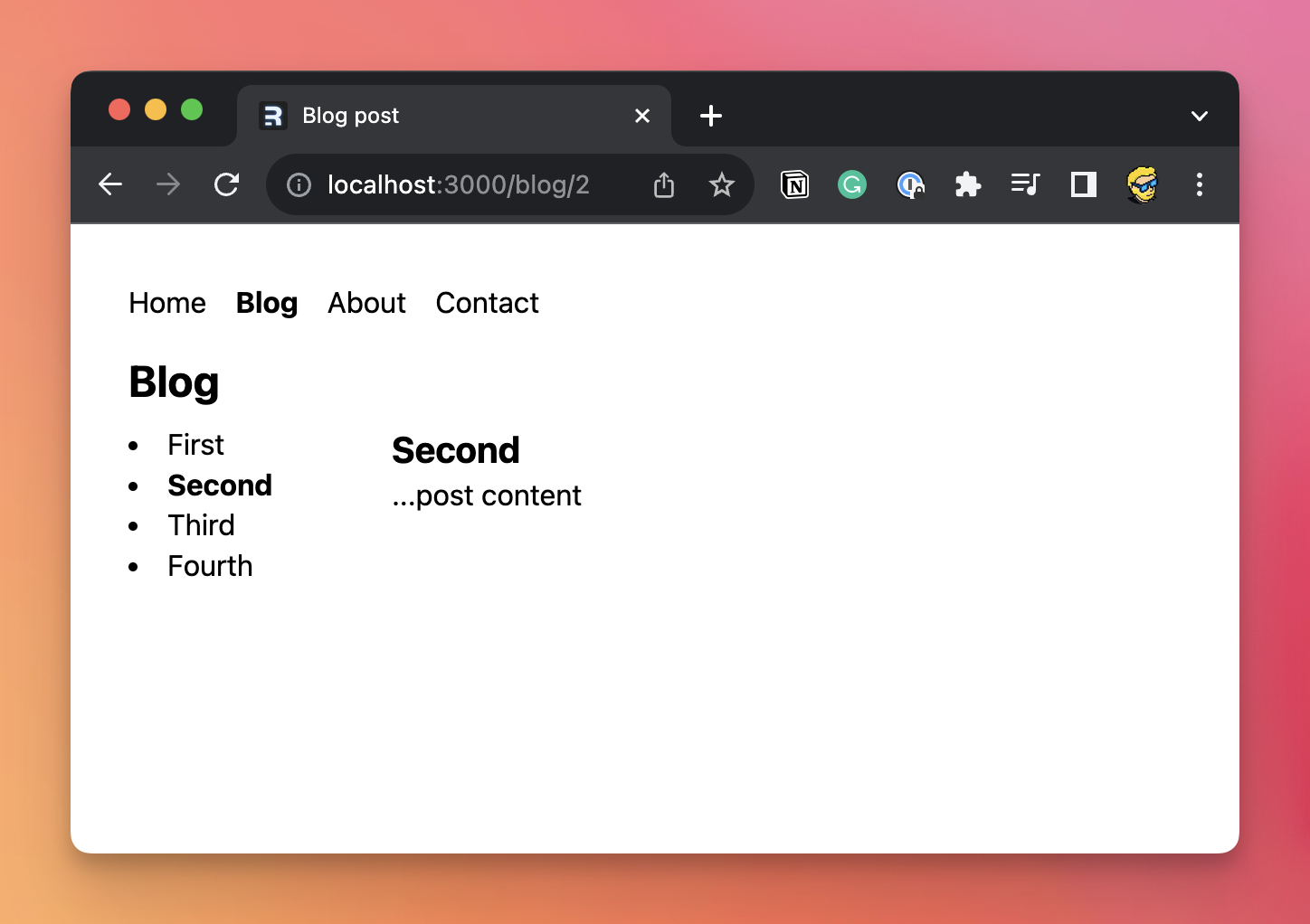 Note that I use the NavLink component here because we can take advantage of it to display the current blog post.
