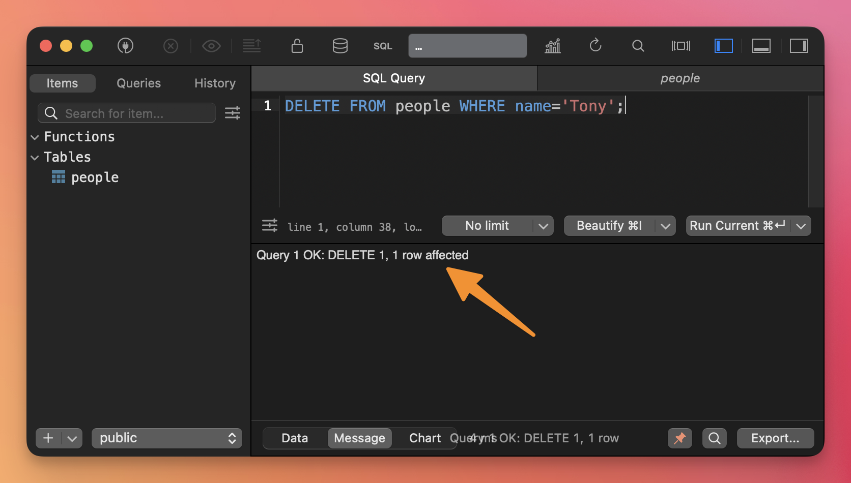 To delete a table instead of the data inside the table, use the DROP TABLE command: