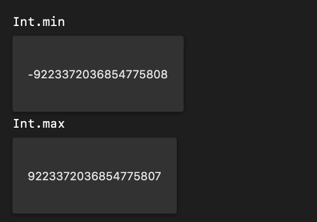 Then using Cocoa APIs you might use other numeric types like CLong, CGFloat, and more.