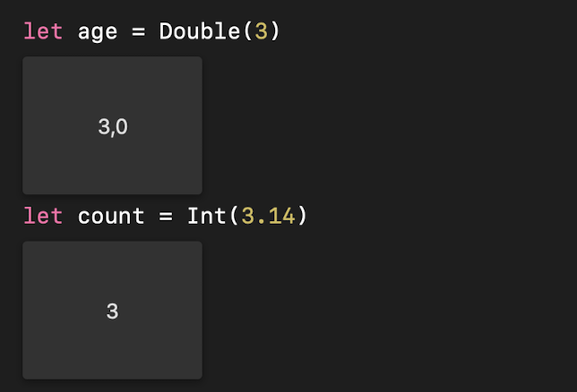Any of those types can always be converted to Int and Double types, instantiating a number passing the value inside parentheses to Double() or Int():