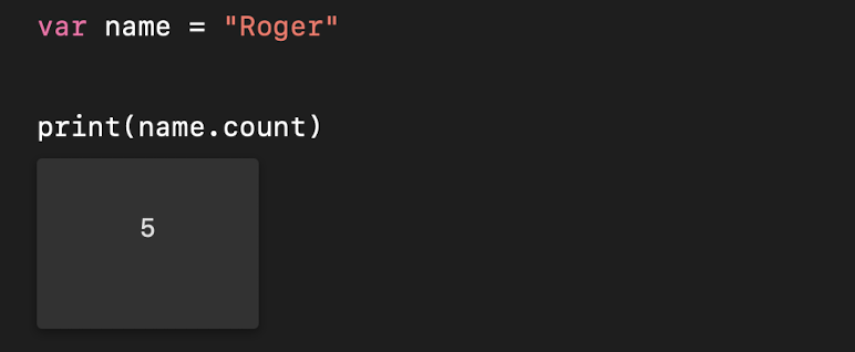 A type also has instance variables. For example the String type has the instance variable count, which gives you the number of characters in a string: