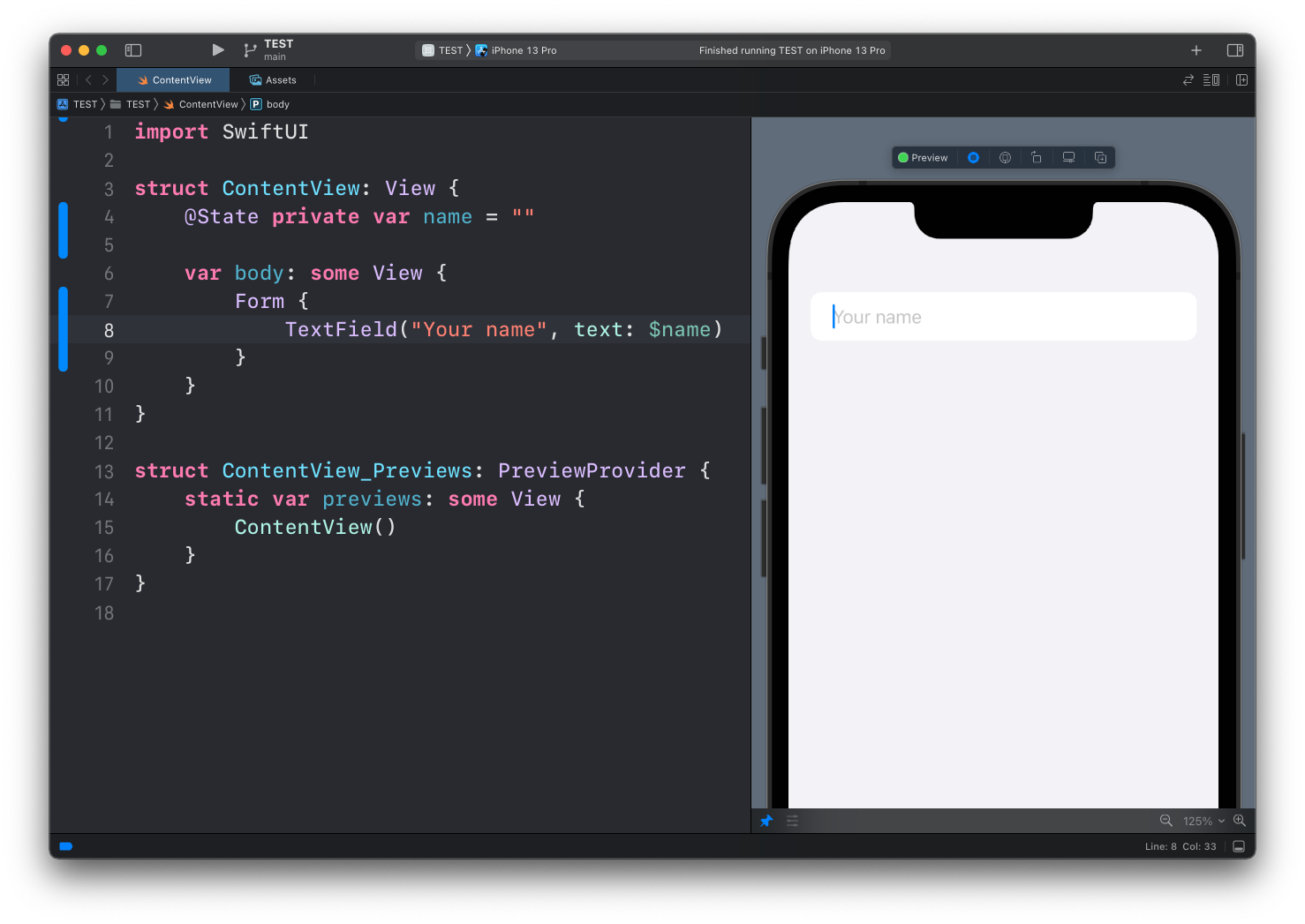 We have a SwiftUI: properties that we prefaced with the @State property wrapper.