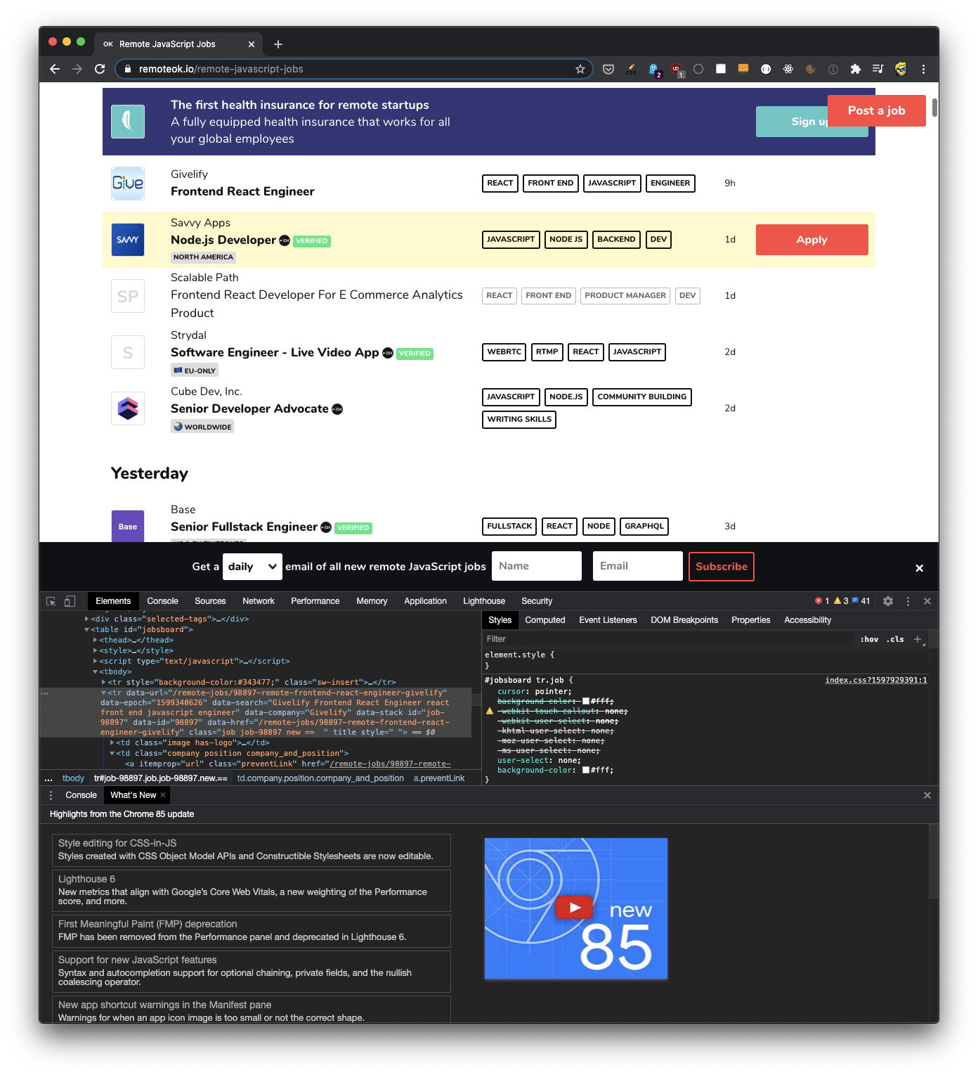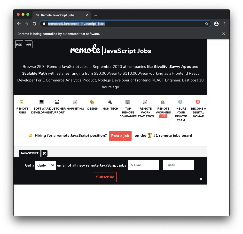 We’re going to scrape JavaScript jobs from remoteok.io, a great remote jobs website.