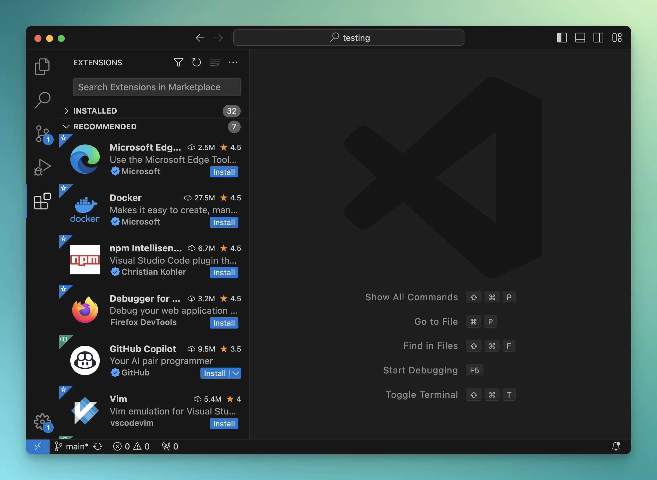We’ll skip the “Run and debug” menu in here, as it’s not much useful right now for us.