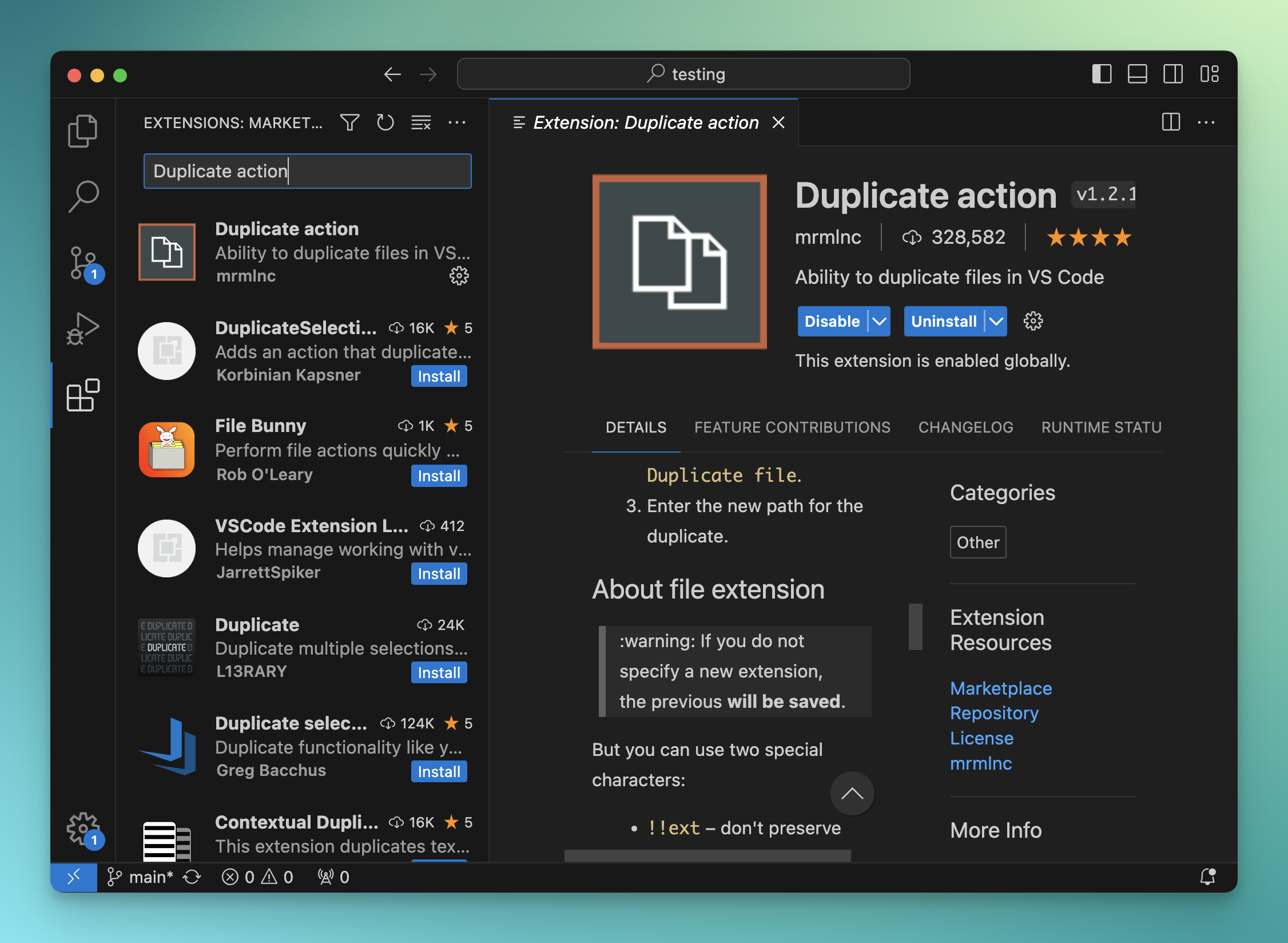 Search “Duplicate action” and you’ll see the extension. Click Install to enable it!
