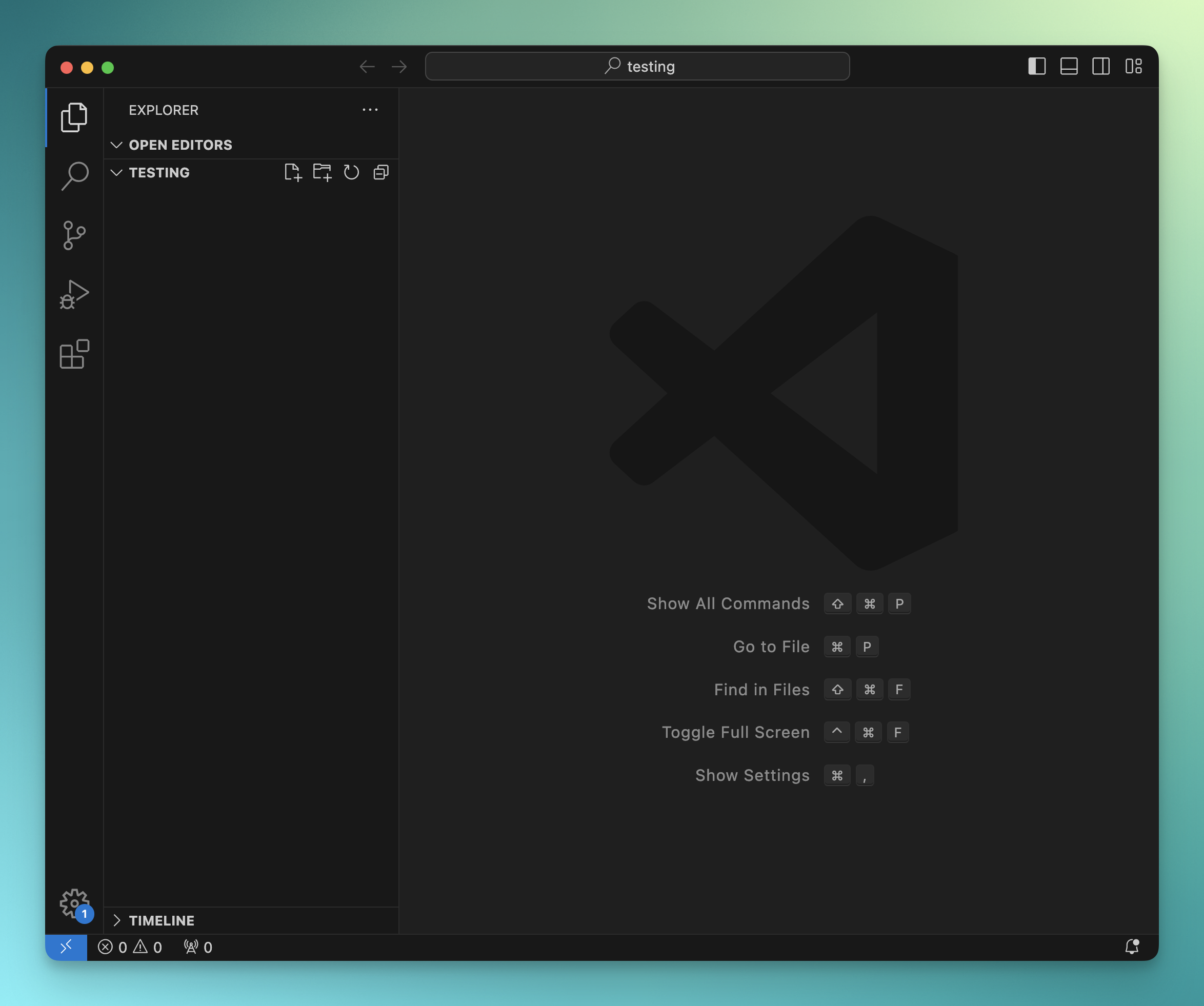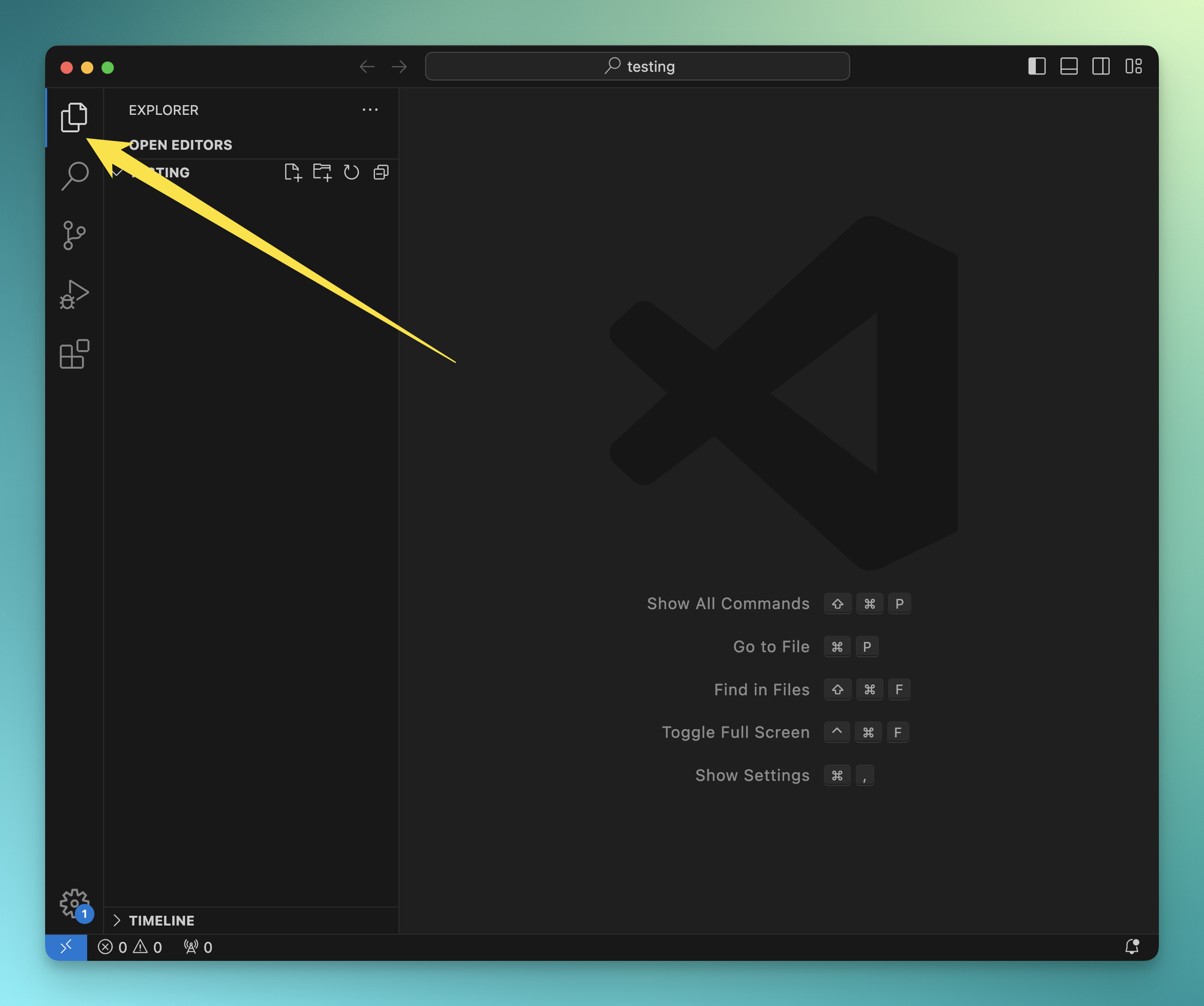 If that folder contained files, you’d see them in the Explorer sidebar. See? The little icon in the Activity bar is now highlighted, it means you’re in the file explorer.