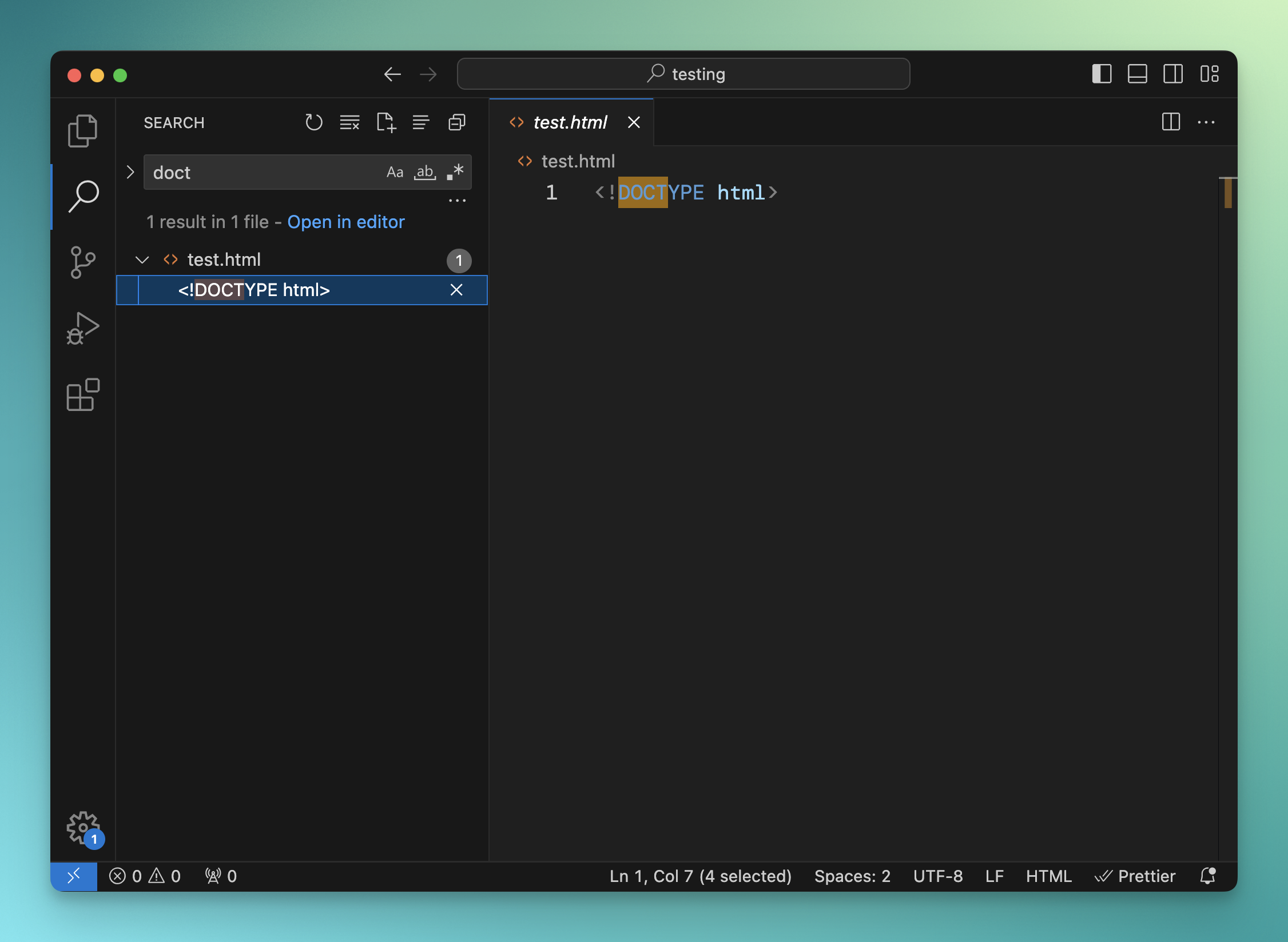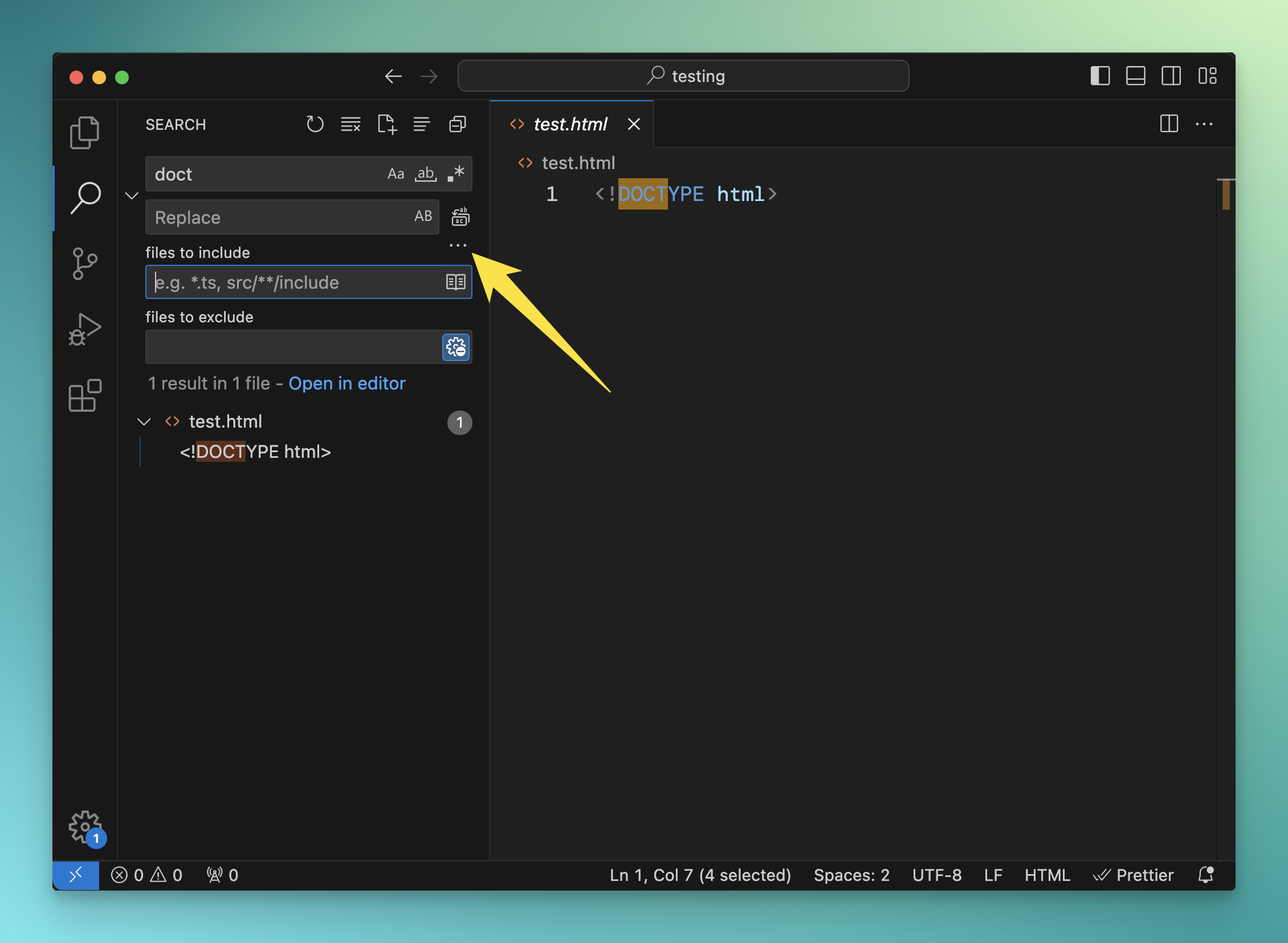 Clicking the ▷ symbol on the left enables the “search and replace” tool.