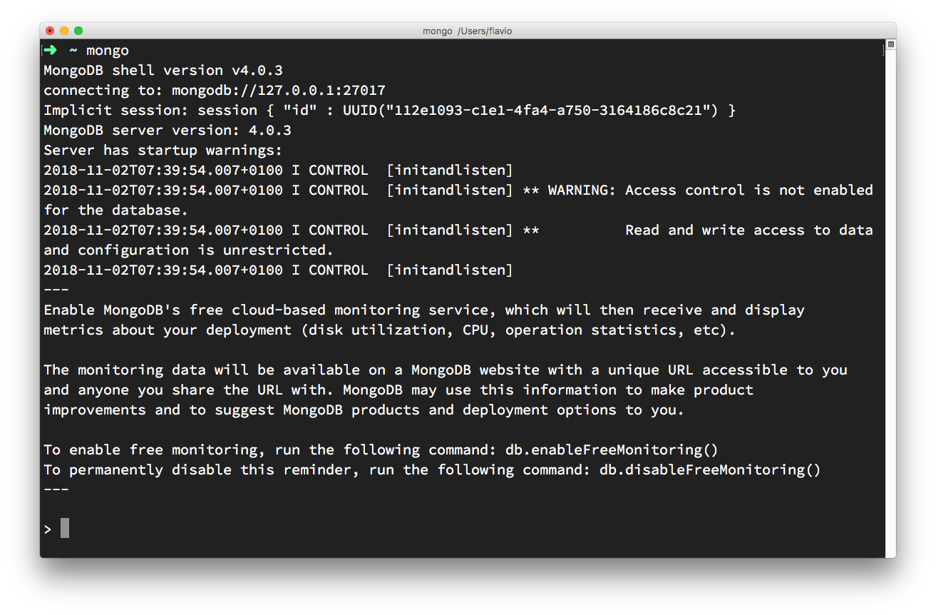 The best way to experiment with MongoDB and starting to interact with it is by running the mongo program, which starts the MongoDB shell.