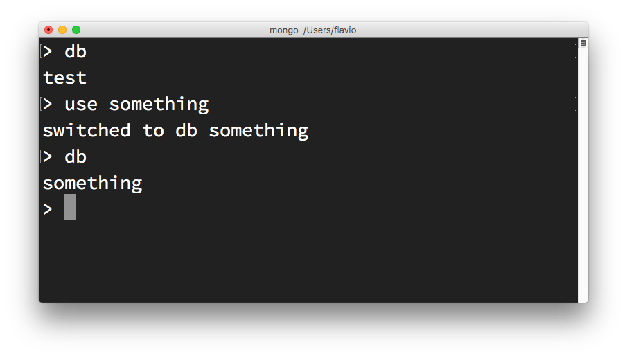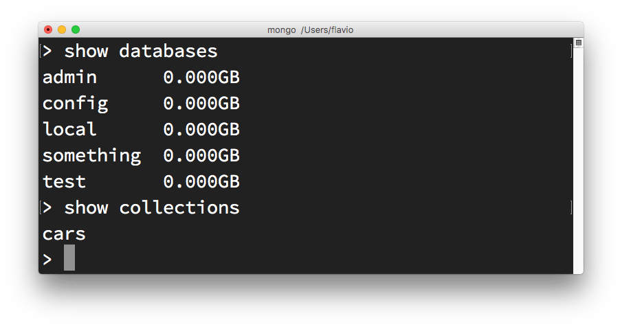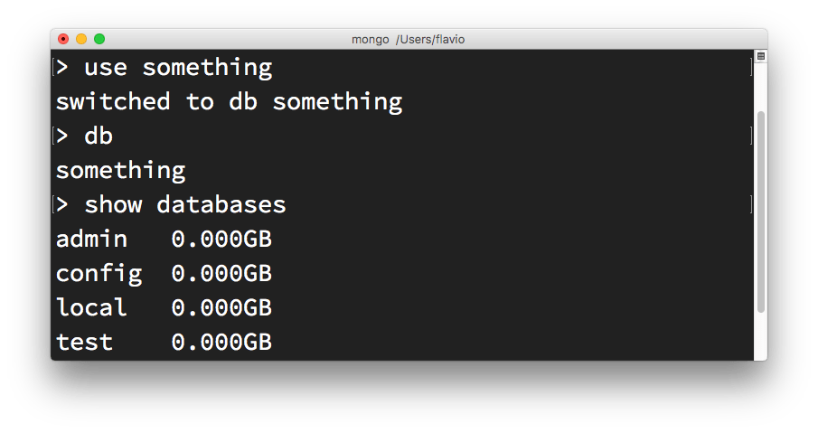 As you can see, the something database is not listed, just because there is no collection yet in it. Let’s create one.