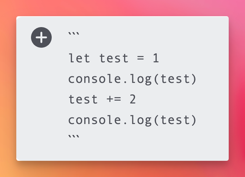 even better is use triple backticks followed by language tag, like ```js because now code will be color highlighted, and it will look much better and it’s easier to “visually parse”