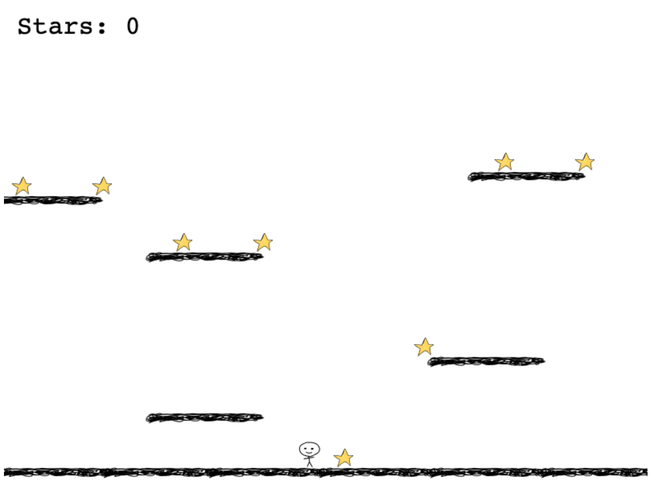 The player can move around with the left/right arrow keys, and jump with the up arrow key. The goal is to pick up all the stars in the game: