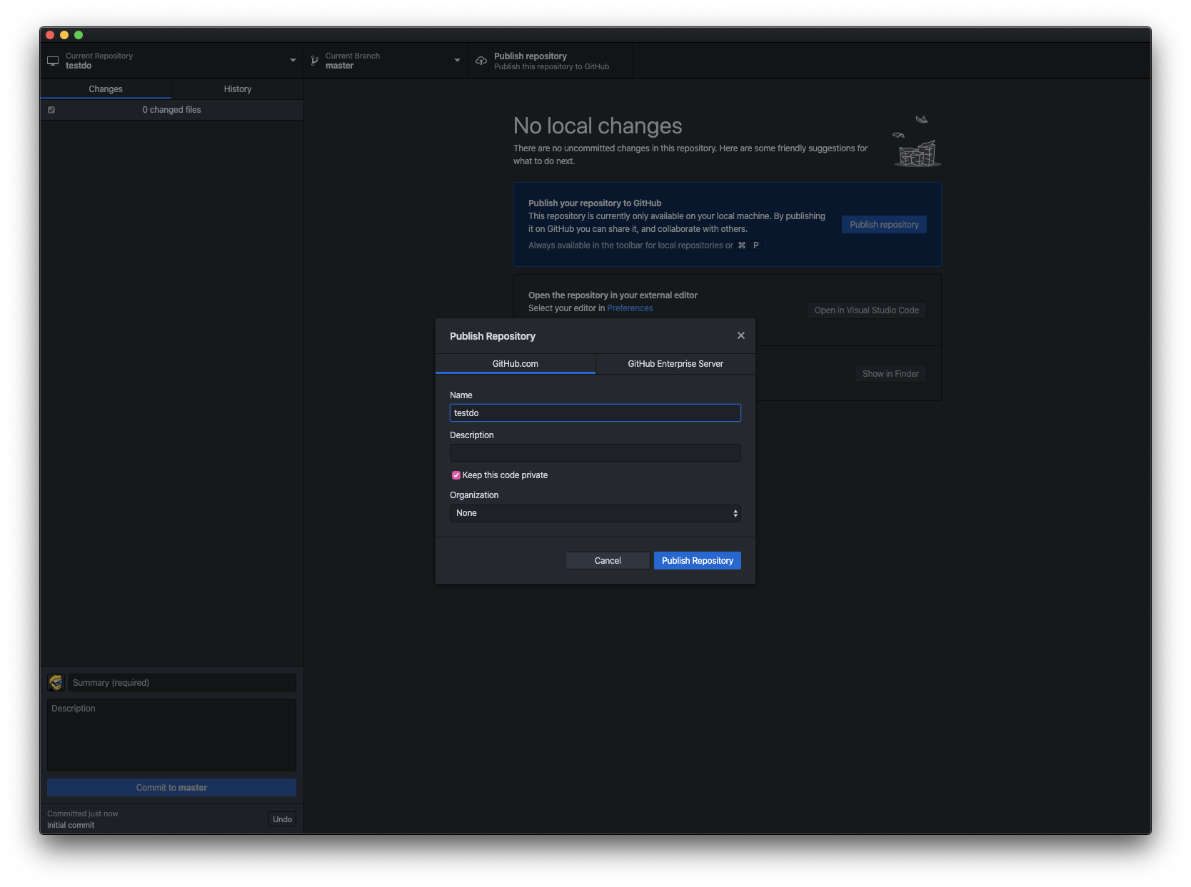 Now it’s time to push the app to GitHub. I use GitHub Desktop, the official GitHub app, so I drag and drop the folder into the app, and it lets me create a new Git repo, and a GitHub repository.