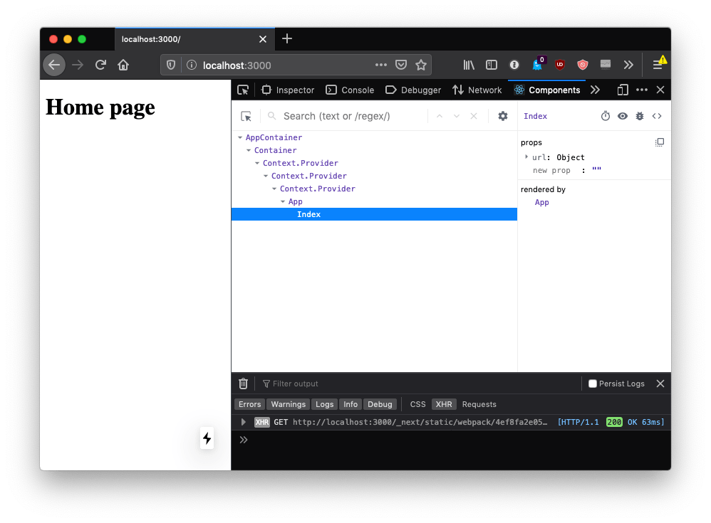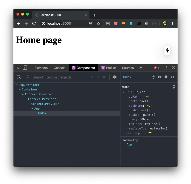 If you move the mouse over the components, you’ll see that in the page, the browser will select the parts that are rendered by that component.
