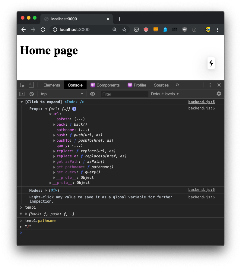 This is pretty awesome because once you have the data printed there, you can right-click any element and press “Store as a global variable”. For example here I did it with the url prop, and I was able to inspect it in the console using the temporary variable assigned to it, temp1: