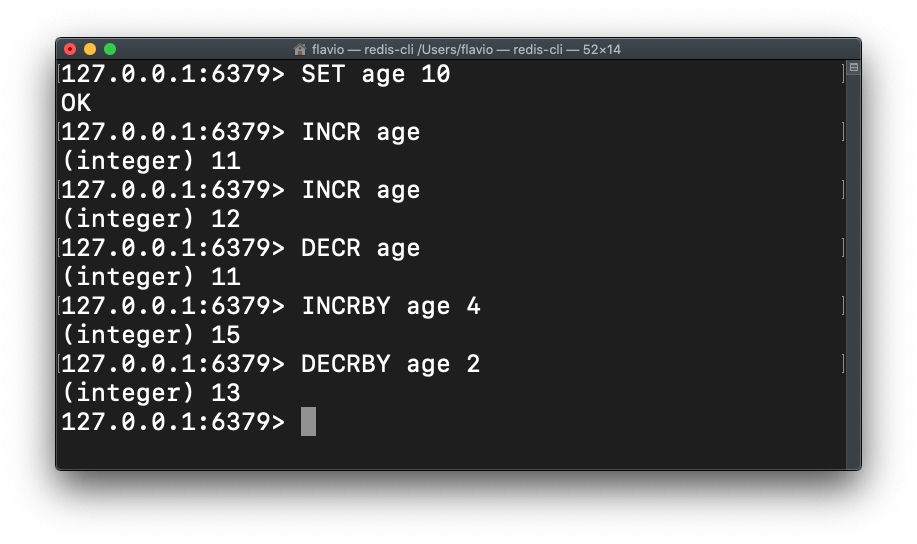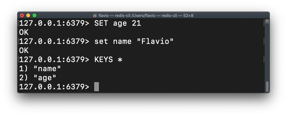 In this example I set a name key with Flavio as value, and using TTL I can check how much time is left until the key will return the value. Once the timer expires, it results in a null value (nil):