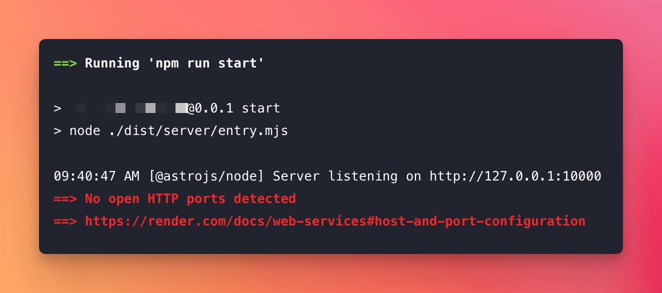 I used this in package.json, and used npm run start in my Render site setting “Start Command” for an Astro site: