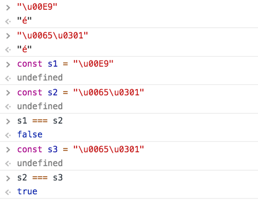 For example it’s the case of accented characters: the letter é can be expressed both as U+00E9 and also as combining e (U+0065) and the unicode character named “COMBINING ACUTE ACCENT” (U+0301):