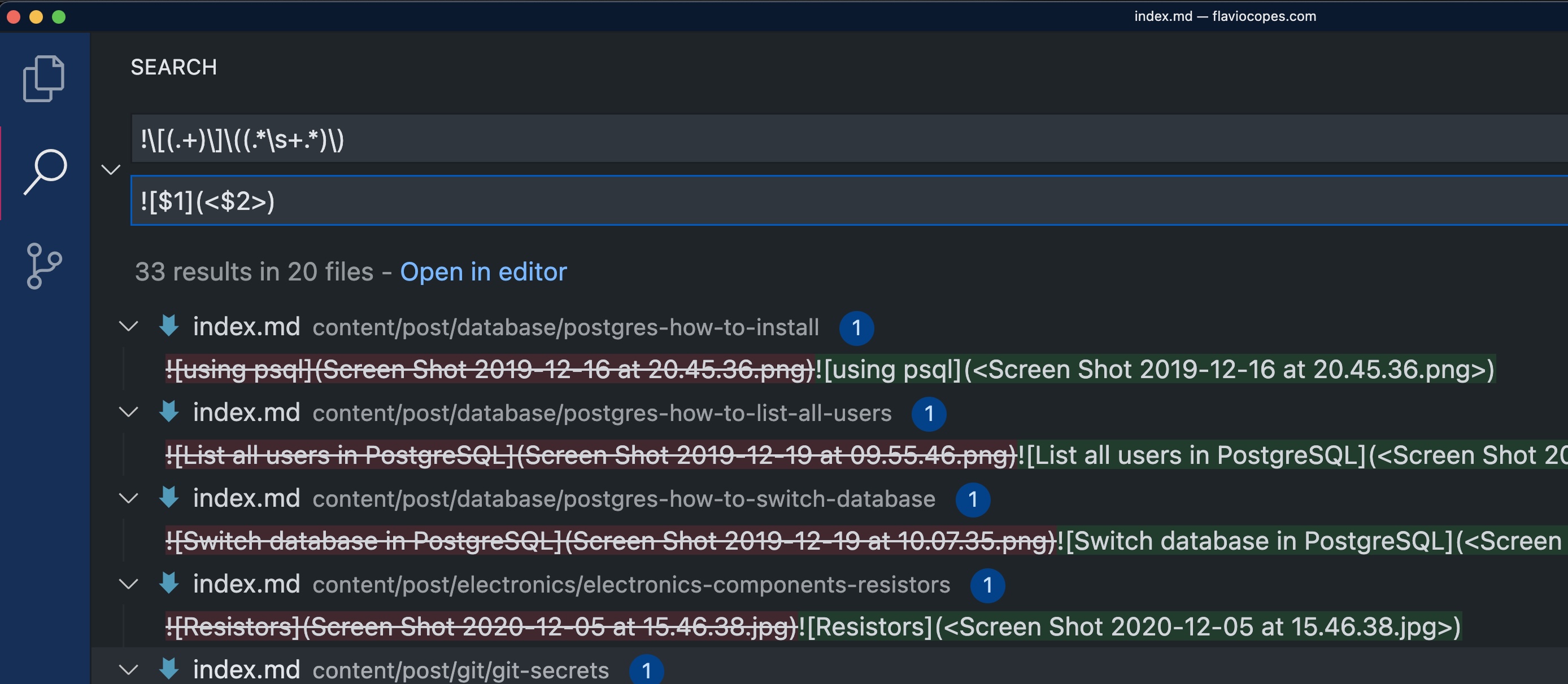 I have hundreds of markdown files and in my markdown I sometimes include images with spaces, mostly because they are screenshots so the format is like