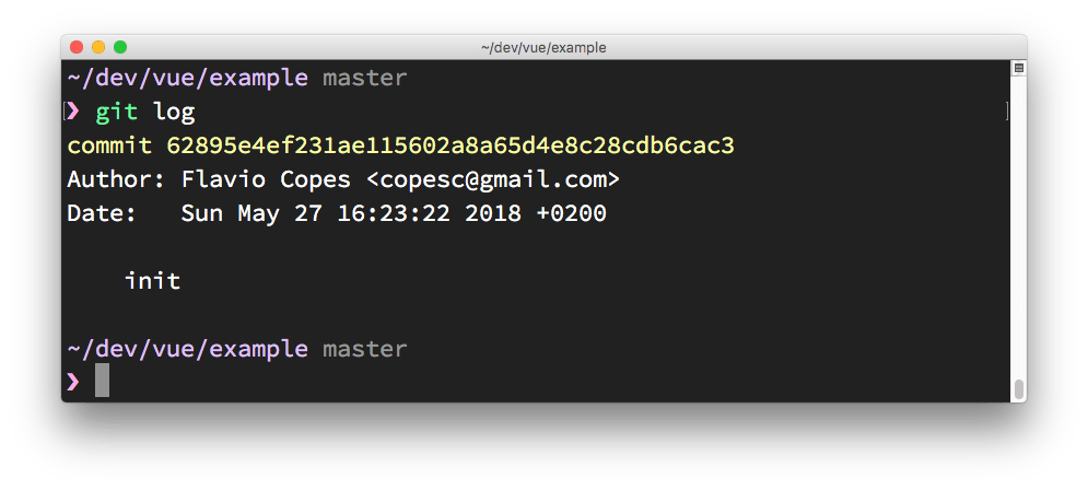 Notice the master word in the lower-left corner of VS Code? That’s because Vue CLI automatically creates a repository, and makes the first commit, so we can jump right in, change things, and we know what we changed: