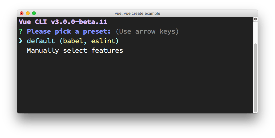 The first thing you’re going to do with the CLI is to create a Vue app: